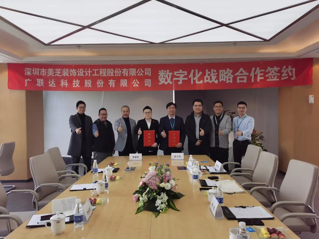 2020年12月14日上午,美芝股份與廣聯達科技股份有限公司(下稱廣聯達)在廣聯達上海創新中心成功簽署裝飾數字化戰略合作框架協議。美芝股份副總經理李碧君與廣聯達創新中心總經理朱小羽代表雙方簽署了《裝飾數字化戰略合作框架協議》,雙方公司相關部門負責人參加會談并見證戰略合作簽約儀式。